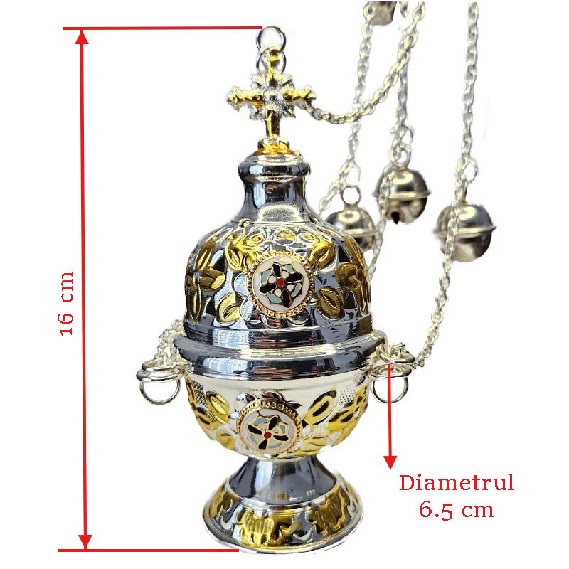 Inaltime 16,5 cm, inaltime cu lant 48 cm, diametru 6,5 cm, inaltime corp16 cm.